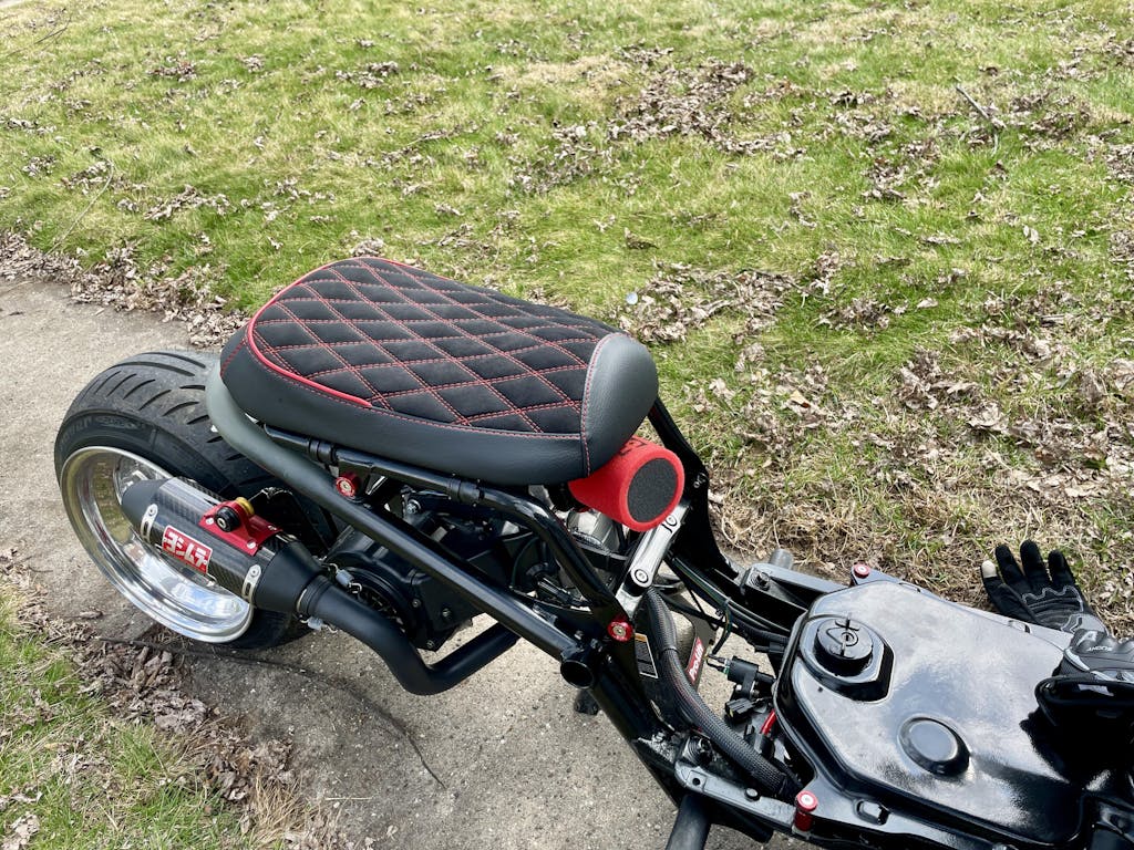 Our diamond stitch seat cover will add an amazing look to your custom build. Alcantarara® Italian suede with our matte black leatherette for a superior look and feel. Finished with a matching Honda logo to complete the look.