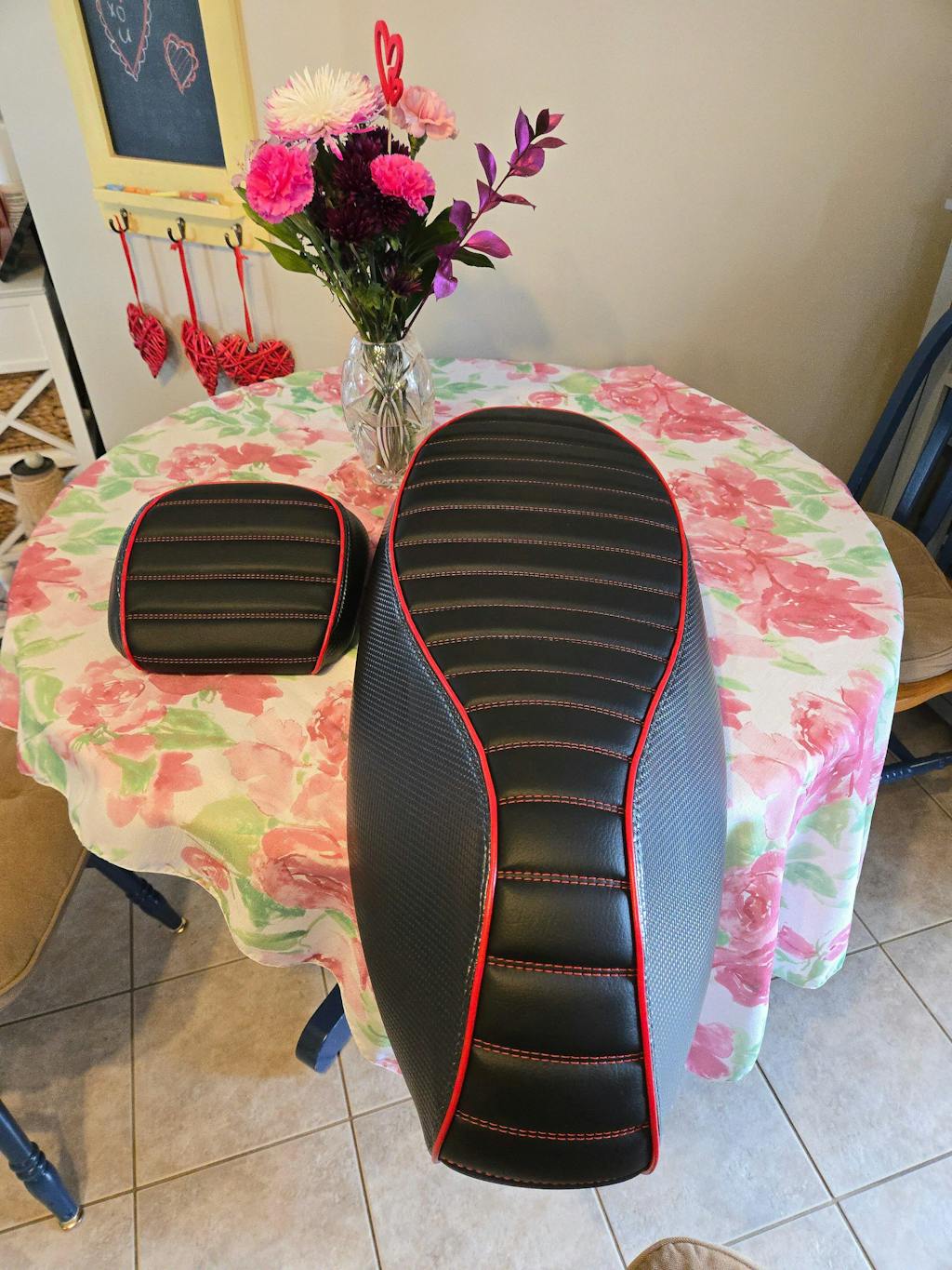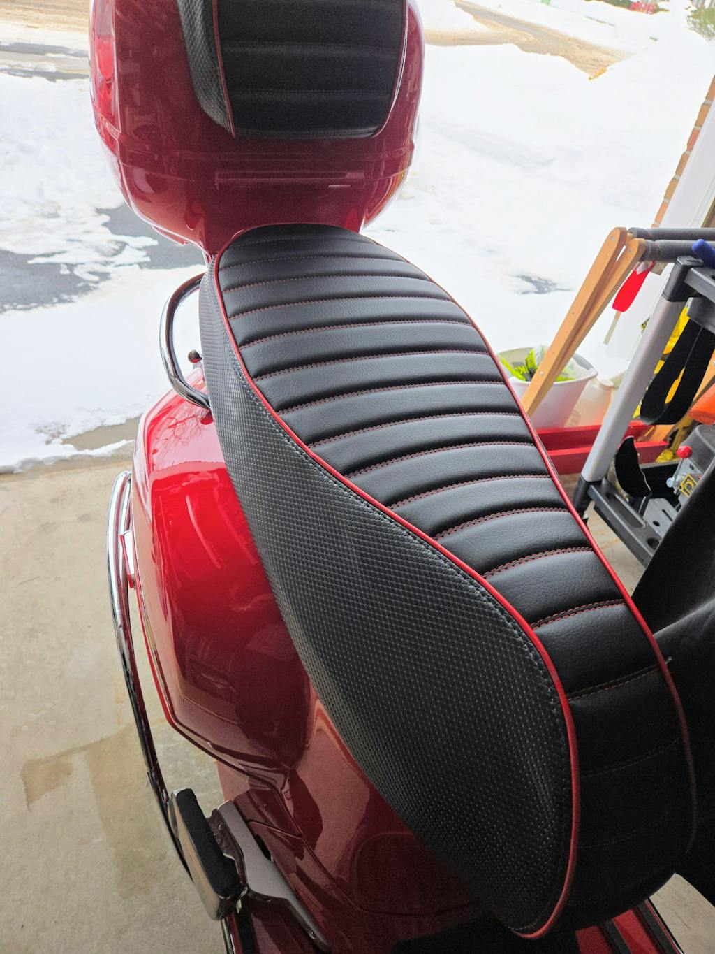 My new red and black seat cover certainly dresses up my red Vespa. Gets lots of compliments.