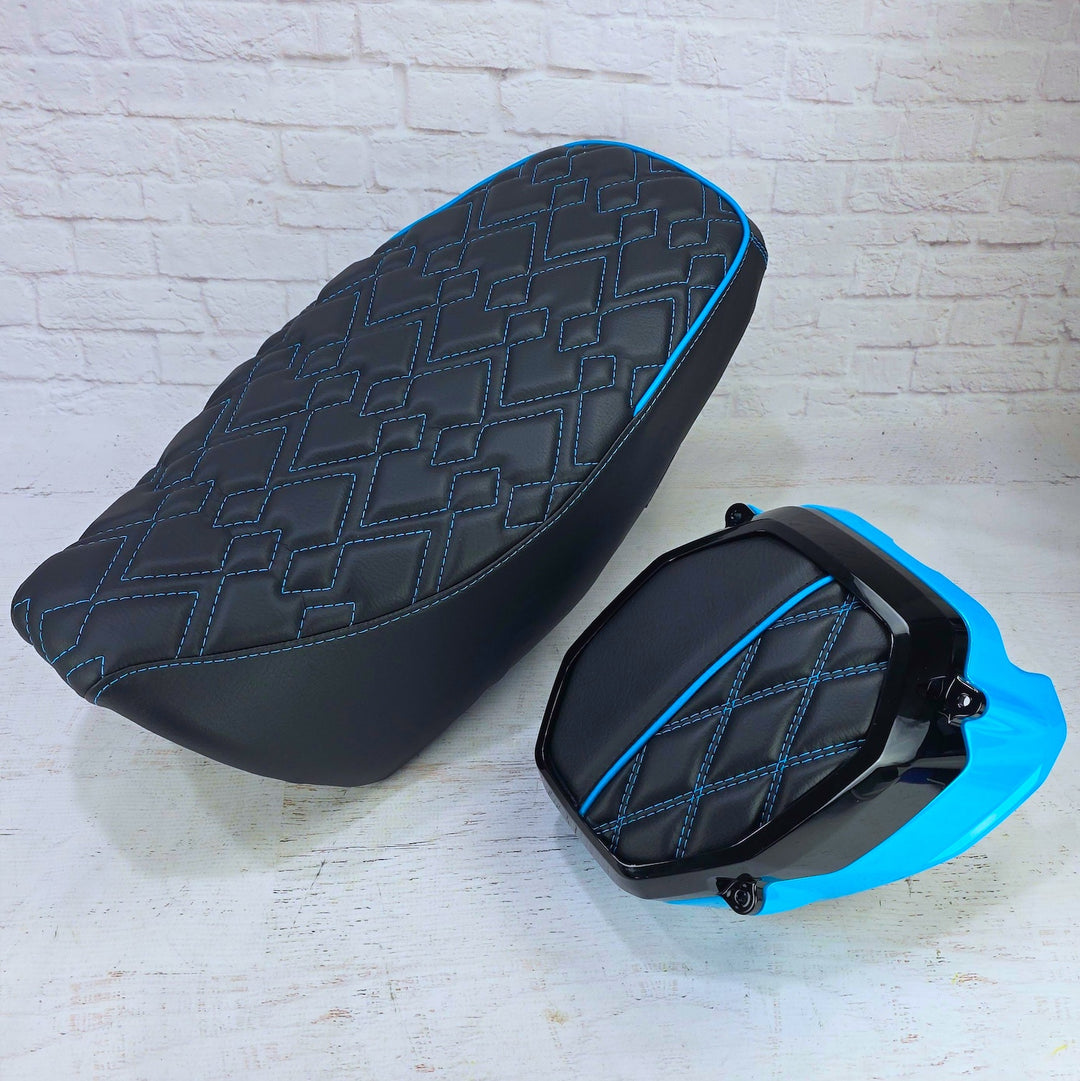 Stitching and piping matched to OEM colors — shown on Grom cowls/fairings